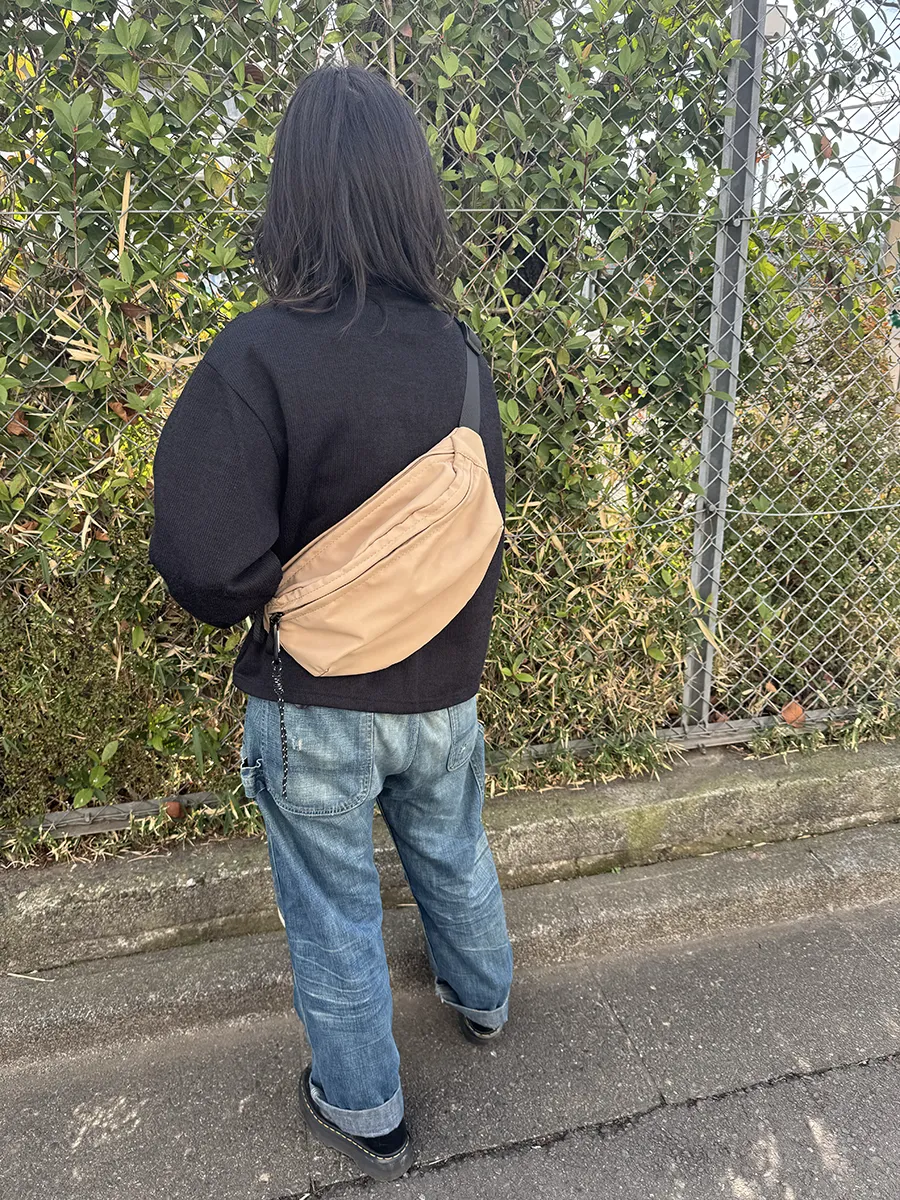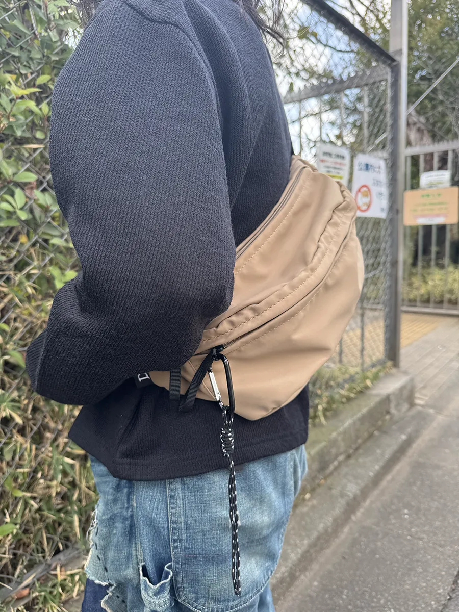 マザーズバッグとしても活躍する、少し大きめサイズのボディバッグ。