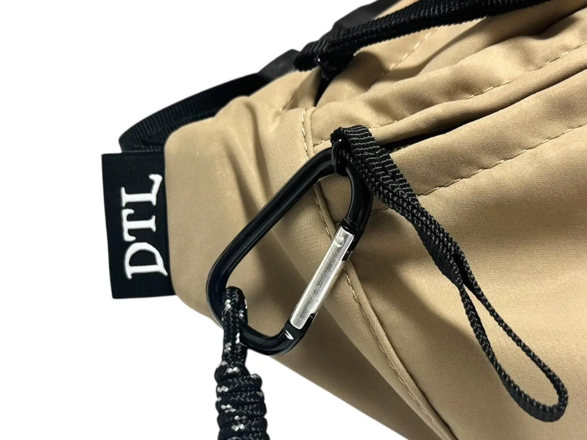 軽量なナイロン素材を使用しているので持ち運びやすく、カラビナ付きで鍵やキーホルダーなども取り付け可能。