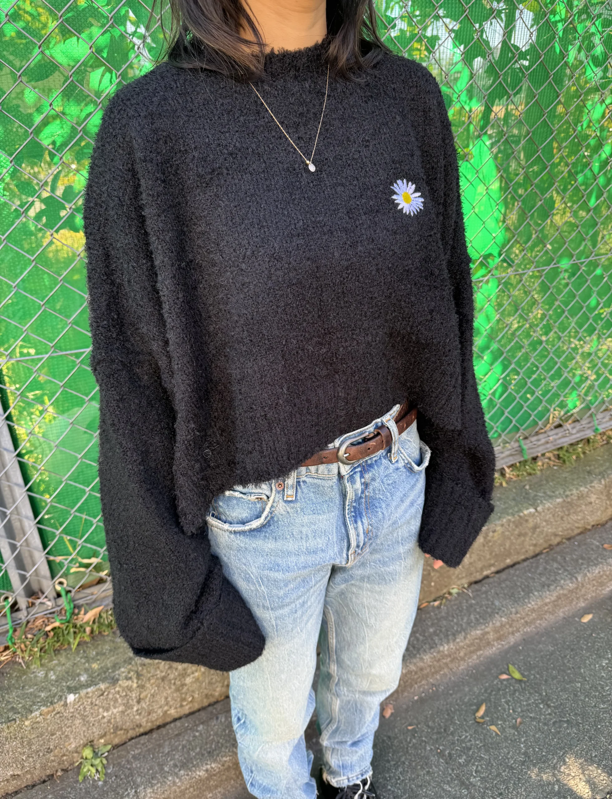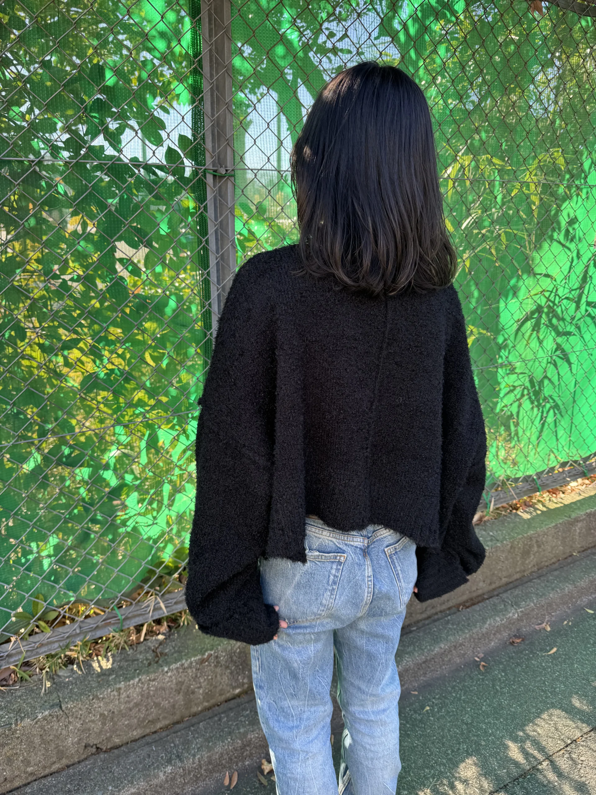 ふんわりとしたブークレ素材が、季節感を高めてくれるショート丈ニット。