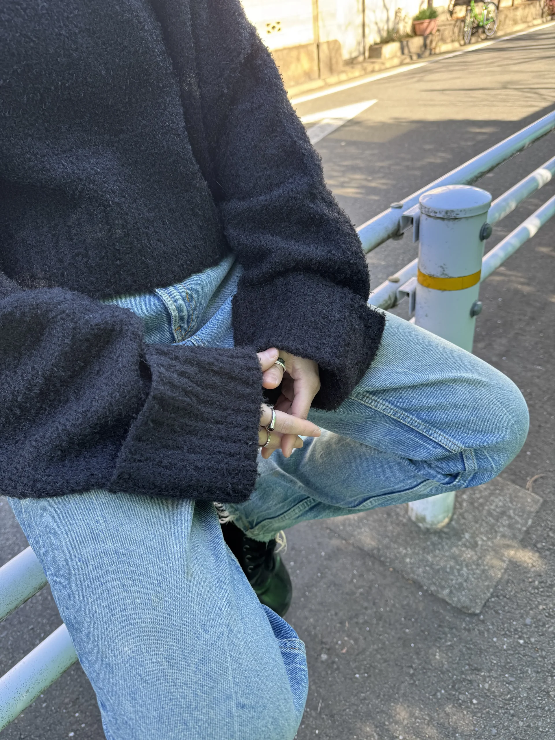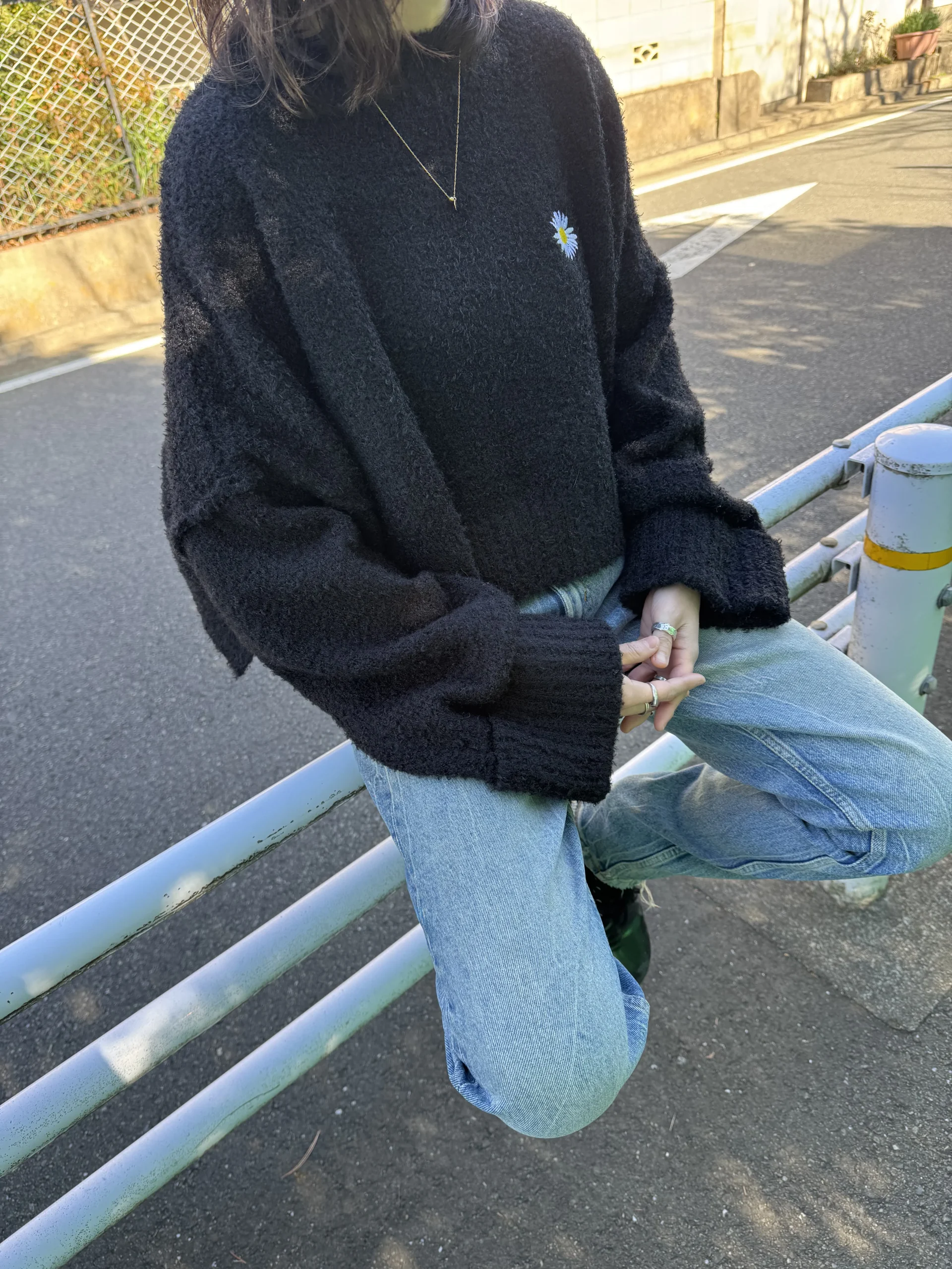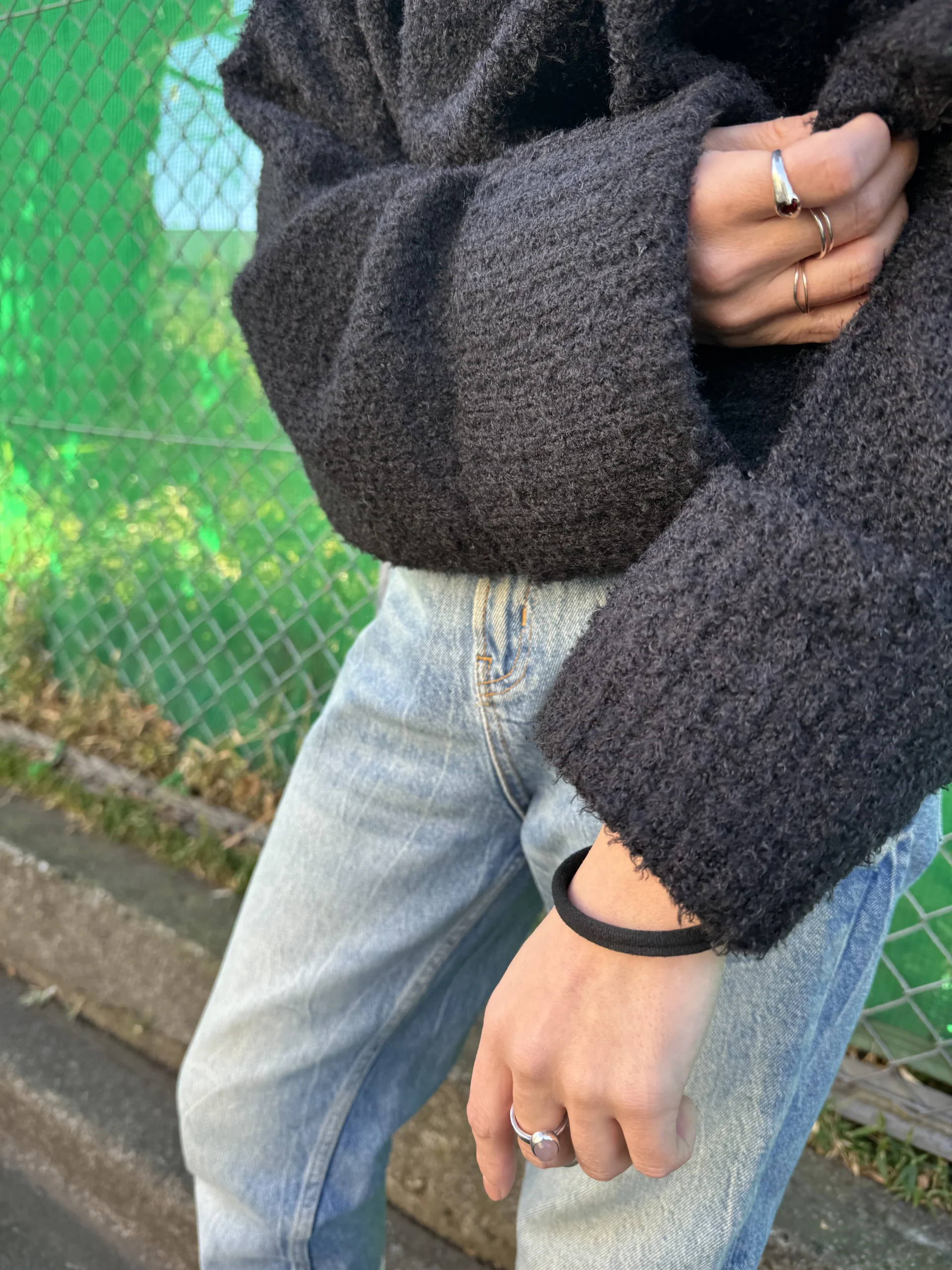 袖口のリブ編みロールアップデザインが、さりげないアクセントになっています。