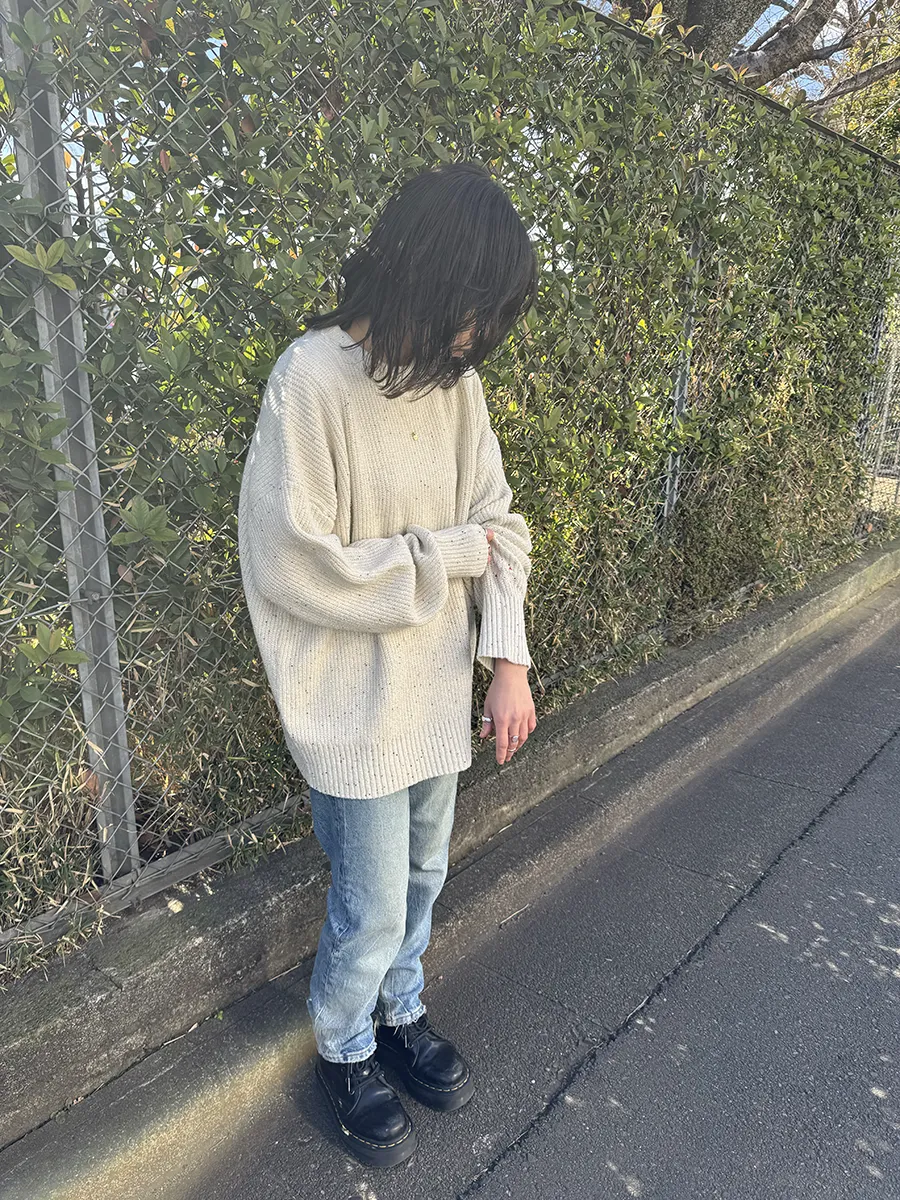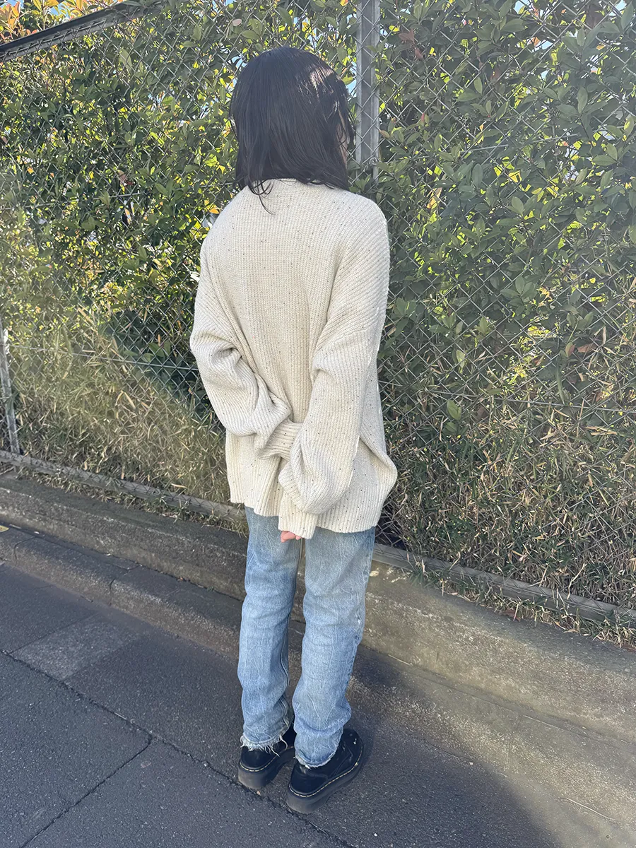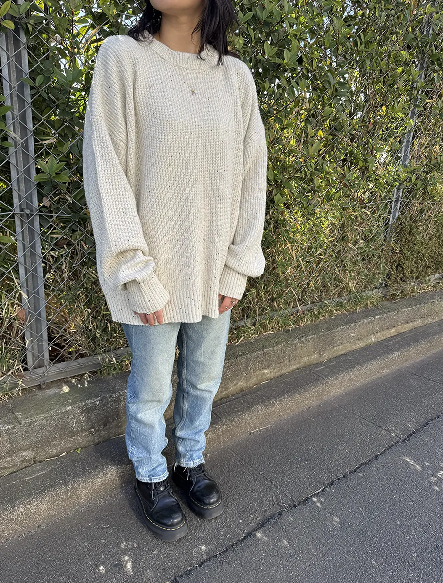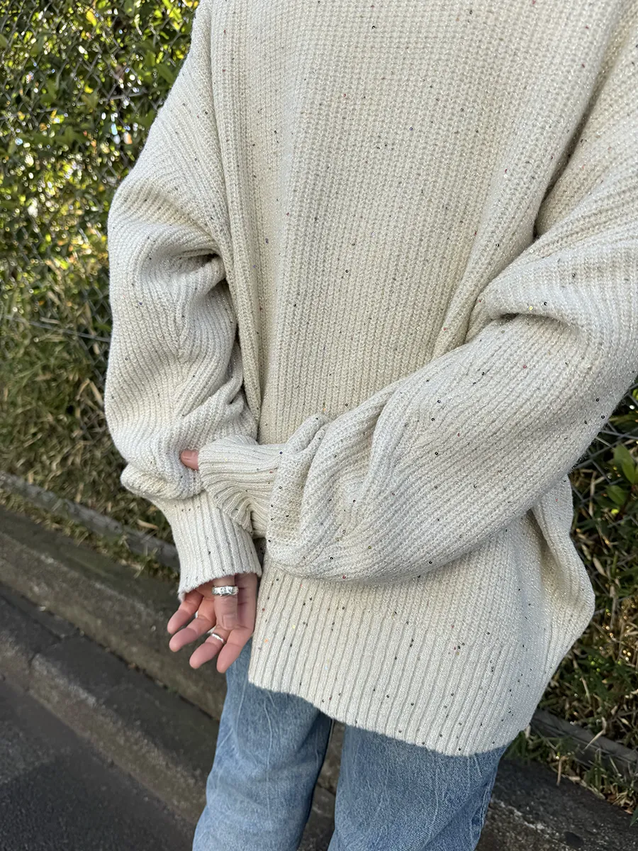 スパンコールのさりげない輝きが目を惹く、オーバーサイズニット。