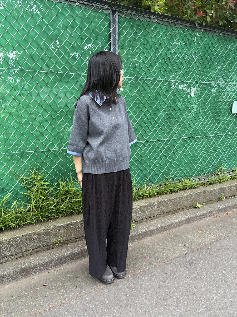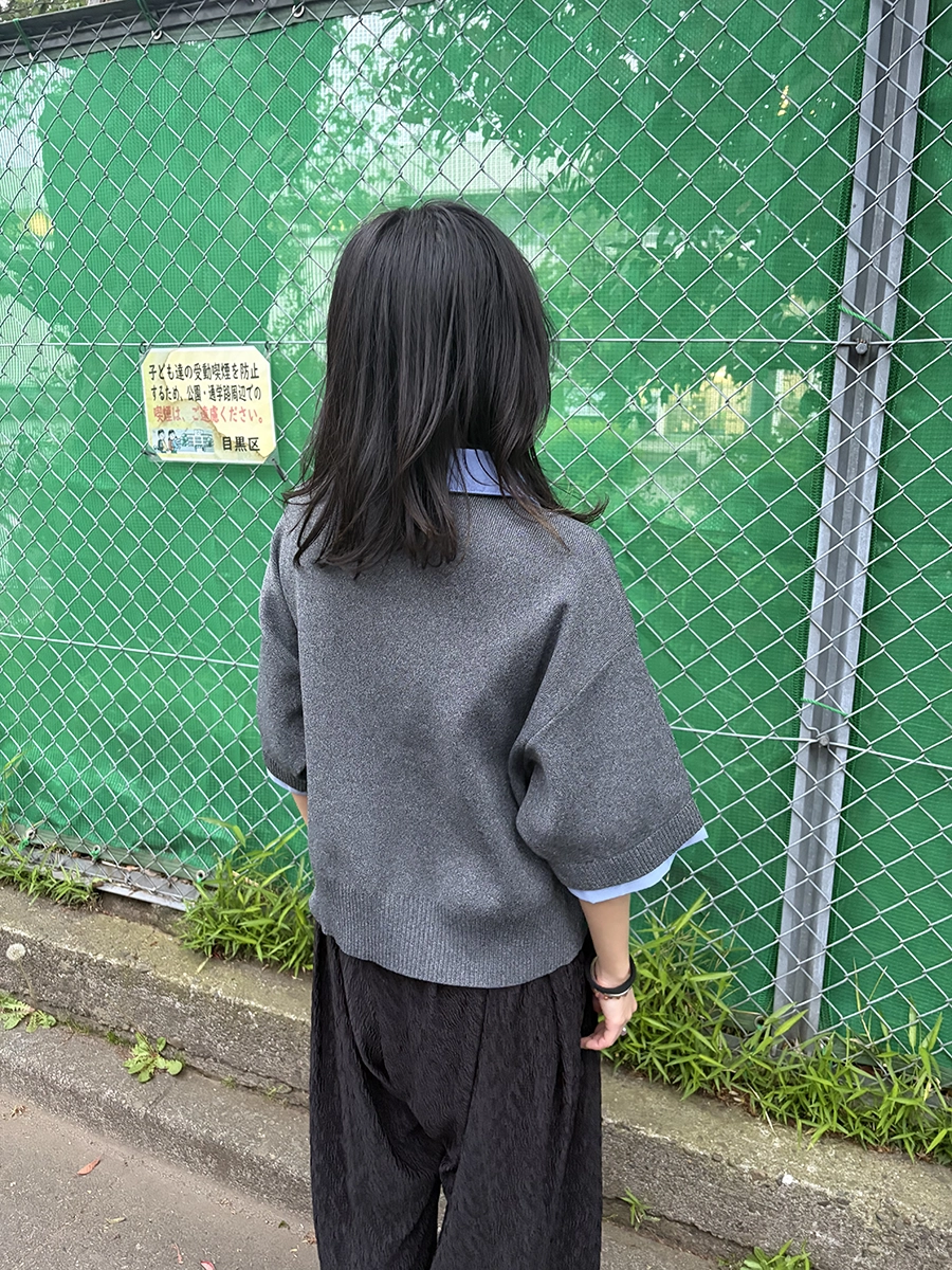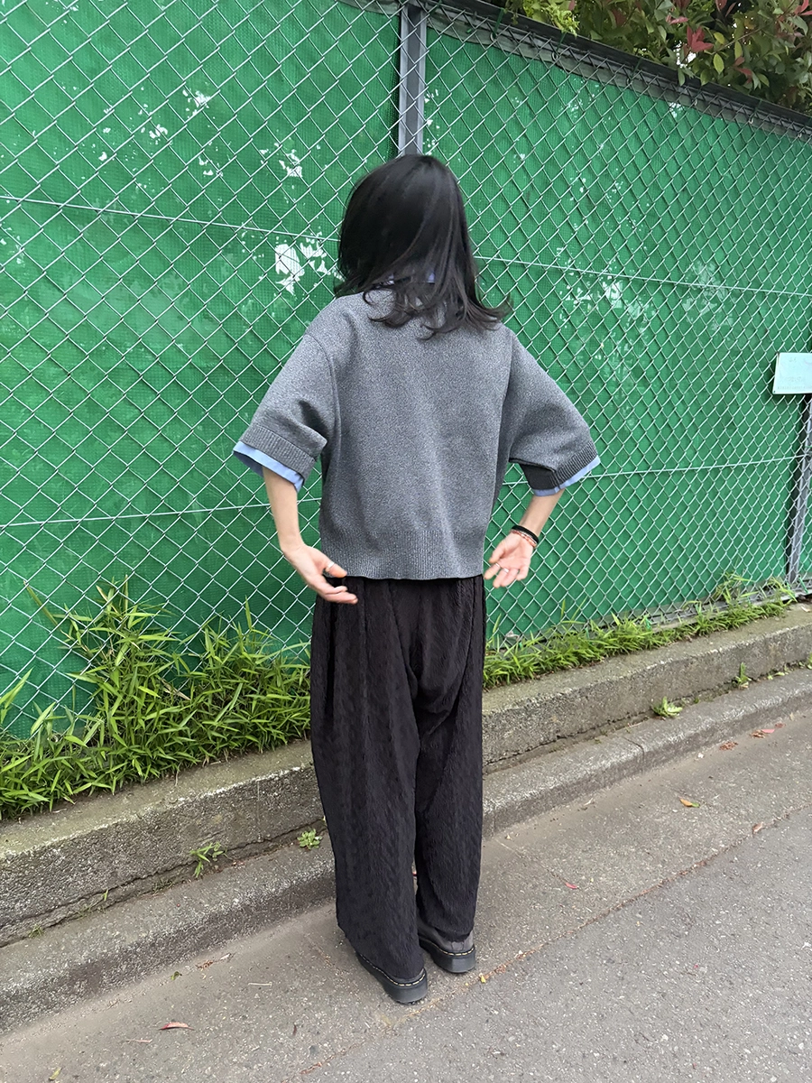 袖口を折り返すことで、よりリアルな“シャツ重ね着風”の見え方を演出し、1枚でこなれたレイヤードスタイルが完成します。