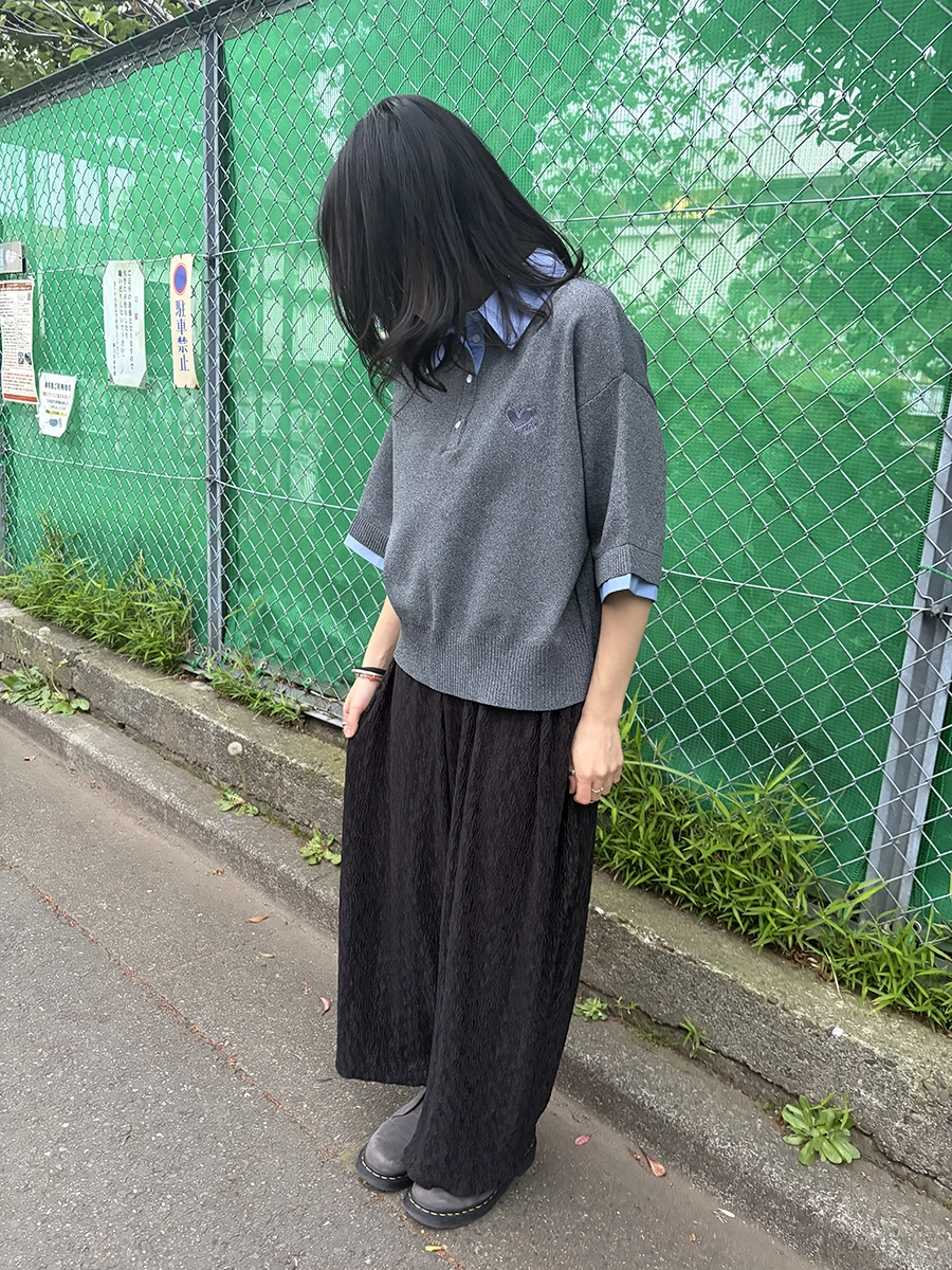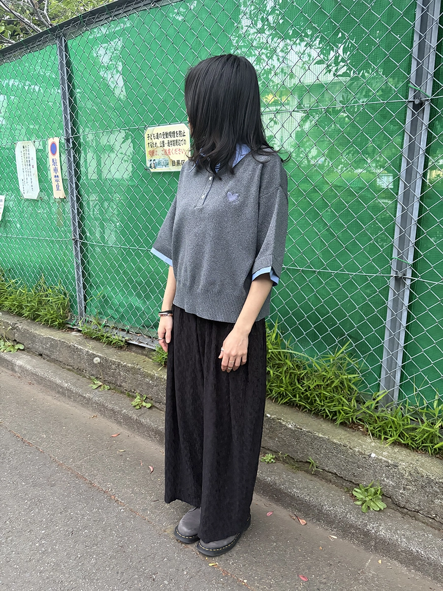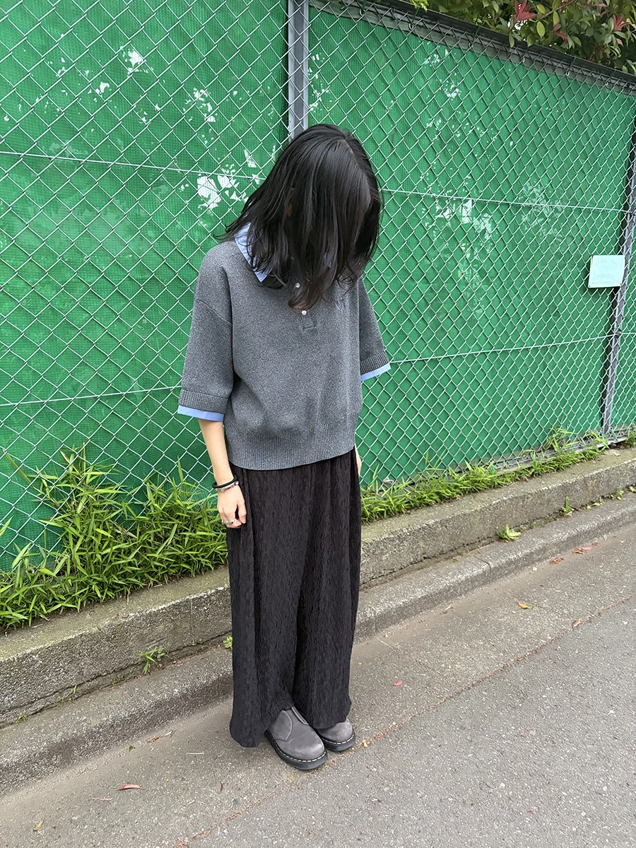 袖口を折り返すことで、よりリアルな“シャツ重ね着風”の見え方を演出し、1枚でこなれたレイヤードスタイルが完成します。