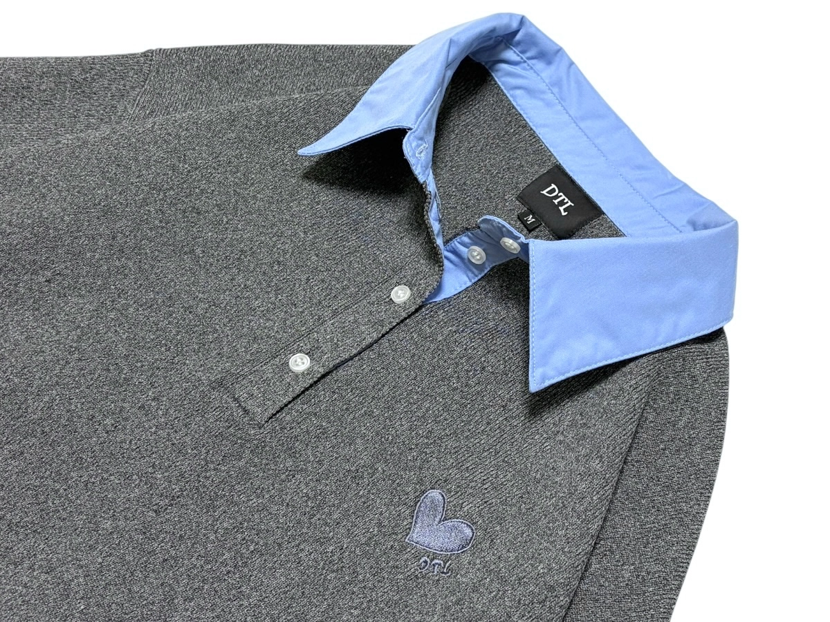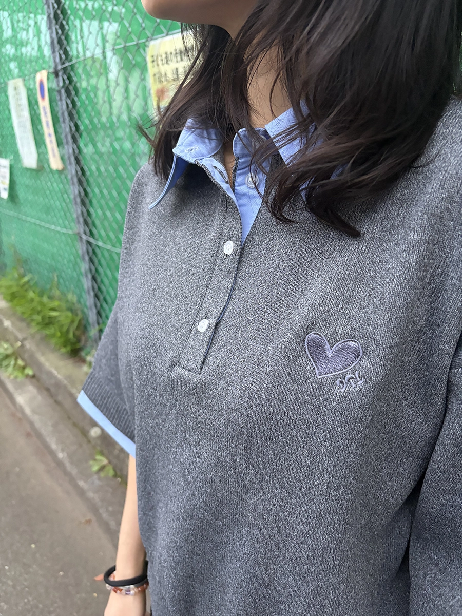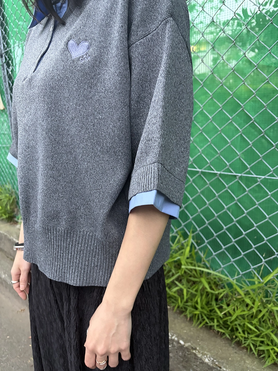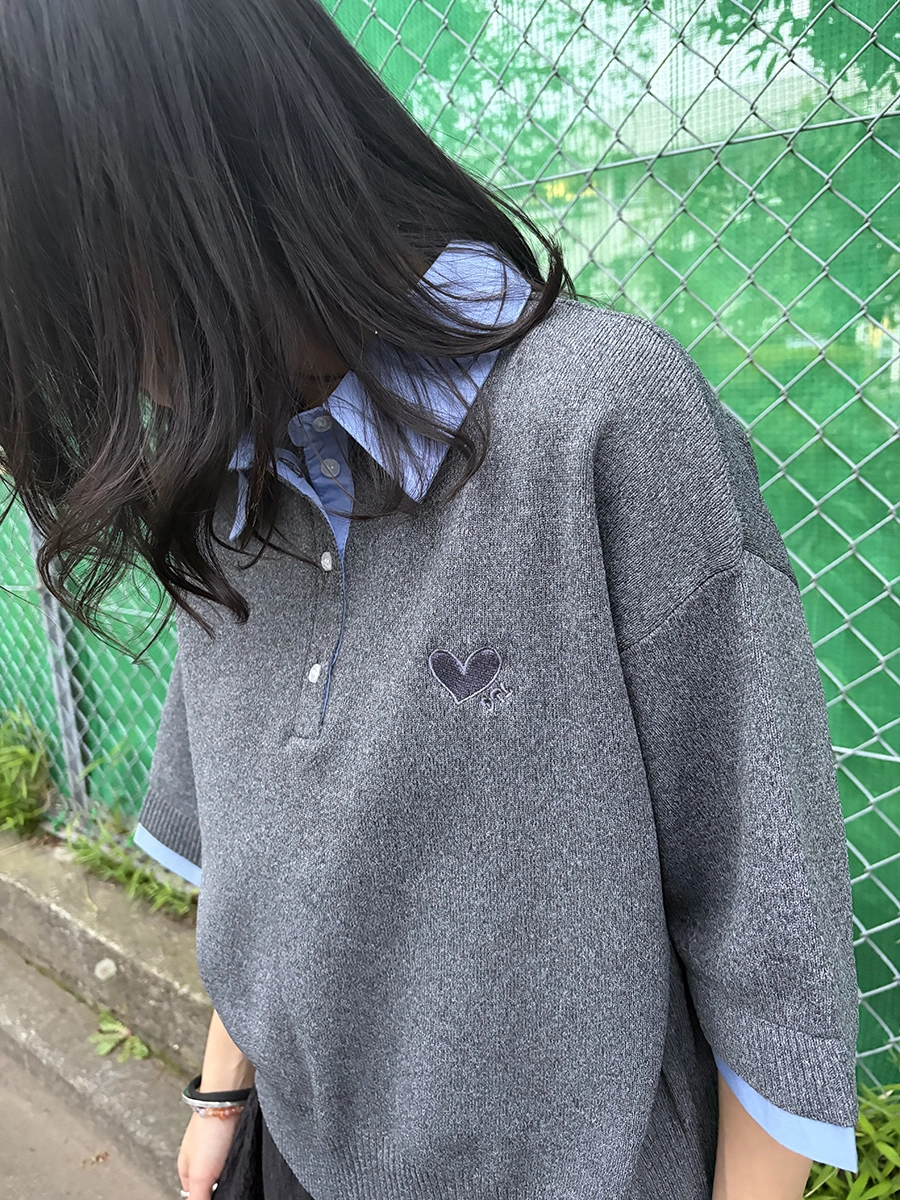 シャツをレイヤードしたようなデザインが魅力の、半袖ドッキングポロニット。
